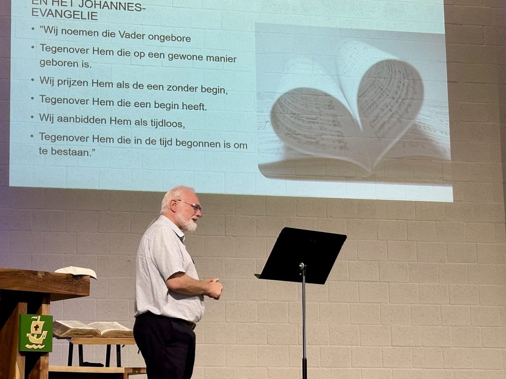 Ds. Visser vervolgde met een bijdrage over de vraag “Wie is Christus?”, zoals die centraal stond op het concilie van Antiochië in het jaar 324. Hij betrok hierbij actuele ethische thema’s en historische parallellen. Binnen de kerk hebben er altijd vragen gespeeld rondom de goddelijkheid van Christus; de discussie rondom Arius werd besproken: Arius stelde dat Christus geen eeuwig God is, maar een geschapen, lagere god. Athanasius daarentegen verdedigde op het concilie van Nicea vanuit de Schrift dat Christus waarachtig God en waarachtig mens is. Ds. Visser onderstreepte de blijvende actualiteit van deze thematiek; ook tegenwoordig zijn er stromingen binnen de kerk die de goddelijkheid van Christus betwijfelen. Hij wees daarbij op het belang om Schriftgezag als uitgangspunt te houden, en om de eenheid rondom deze waarheid te zoeken, omdat waarheidsvinding geen democratisch proces is, maar volgt uit onderwerping aan God.